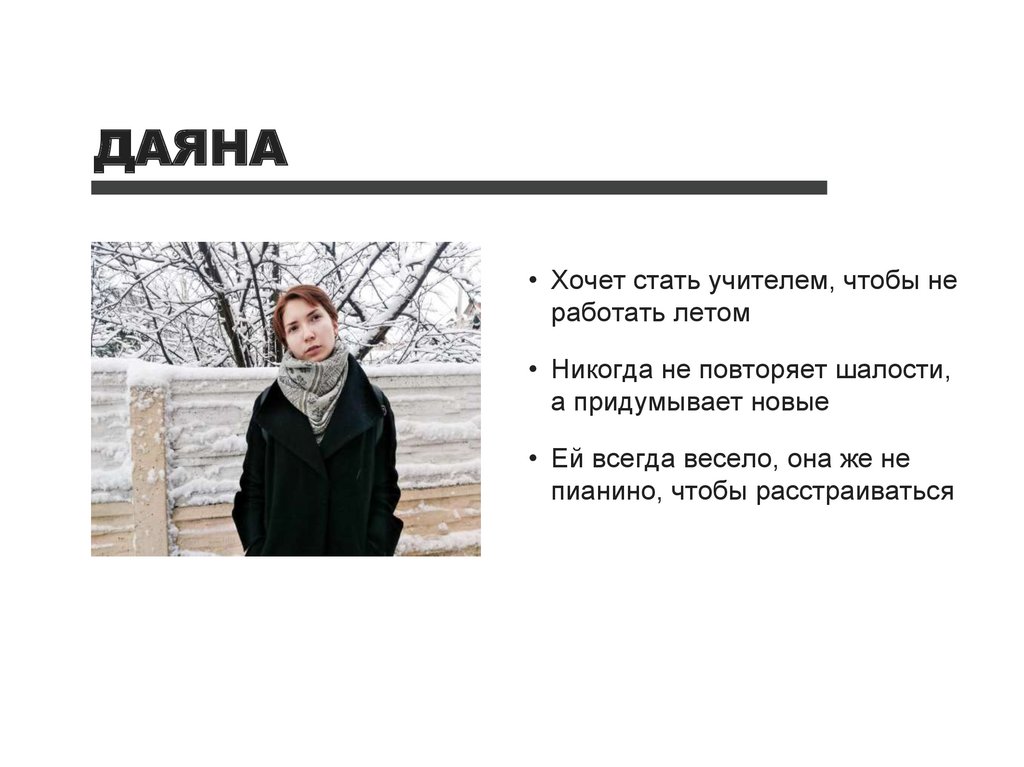 ДАЯНА• Хочет стать учителем, чтобы не