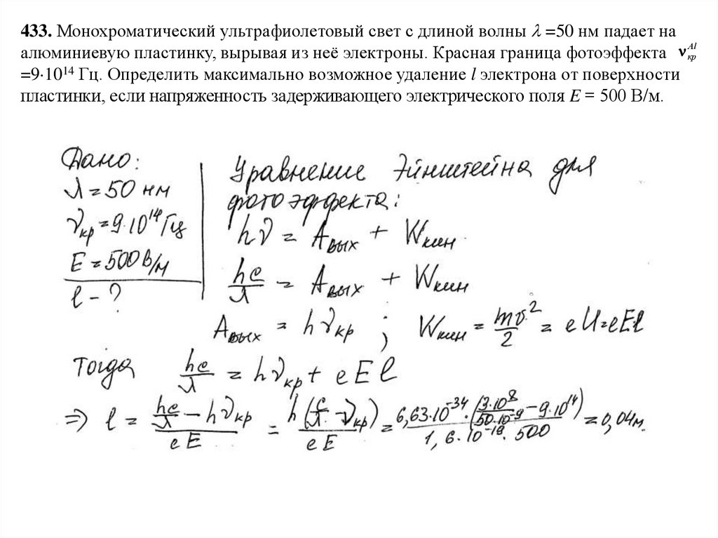 433. Монохроматический ультрафиолетовый свет с длиной волны =50 нм падает наAl