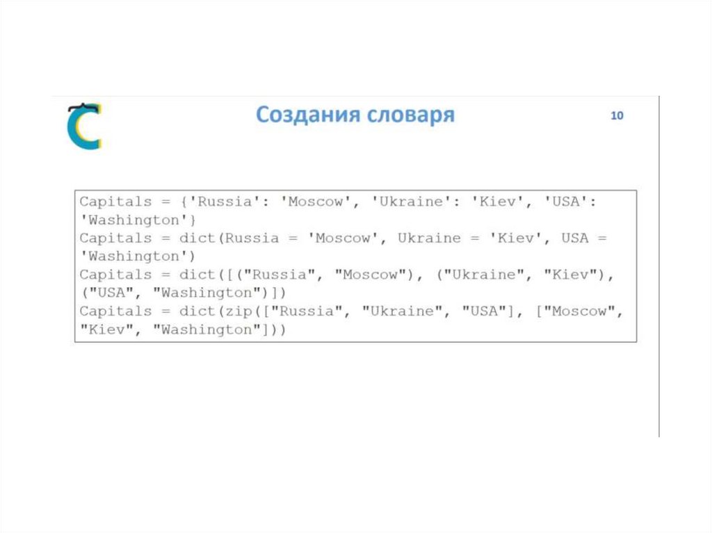 Словари в Python. Создание словаря