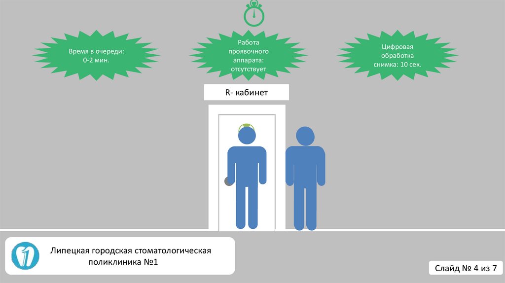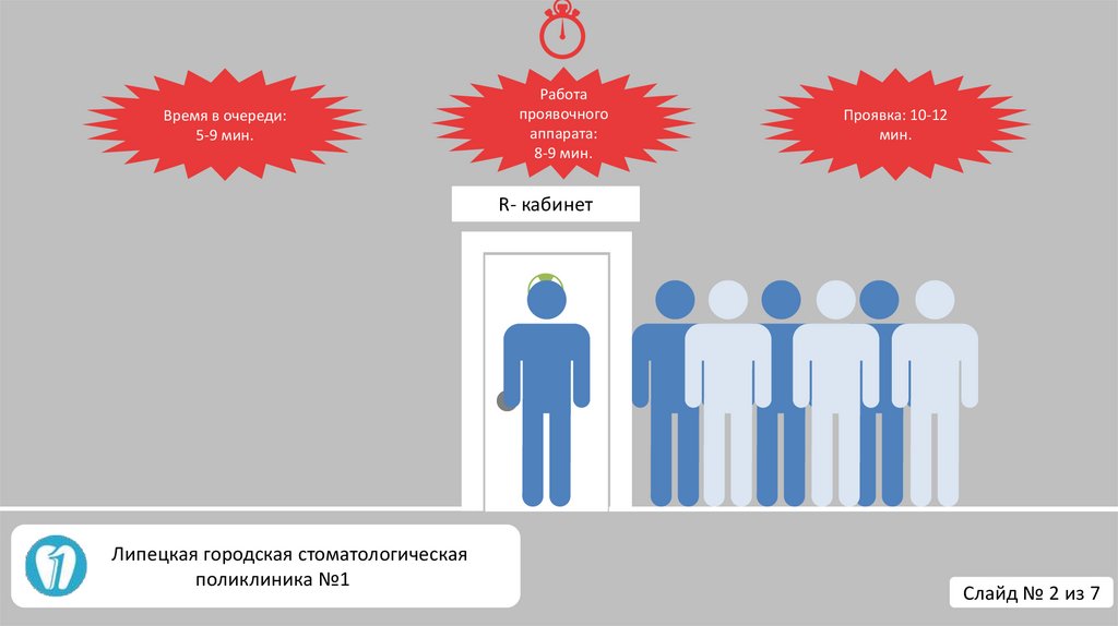 • Время ожидания пациентов в очереди около рентген. кабинета 5-9мин.