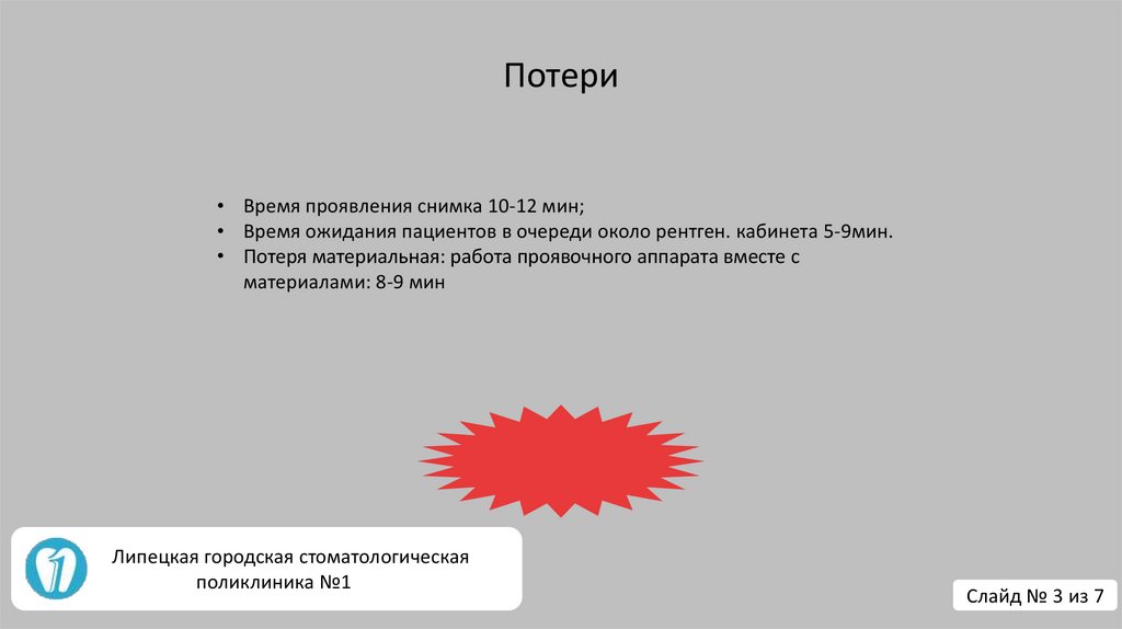 Потери• Время проявления снимка 10-12 мин;