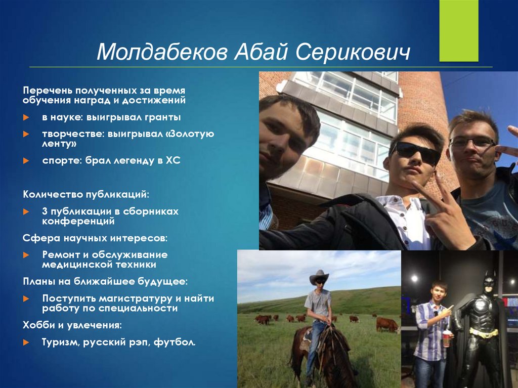 Молдабеков Абай СериковичПеречень полученных за время