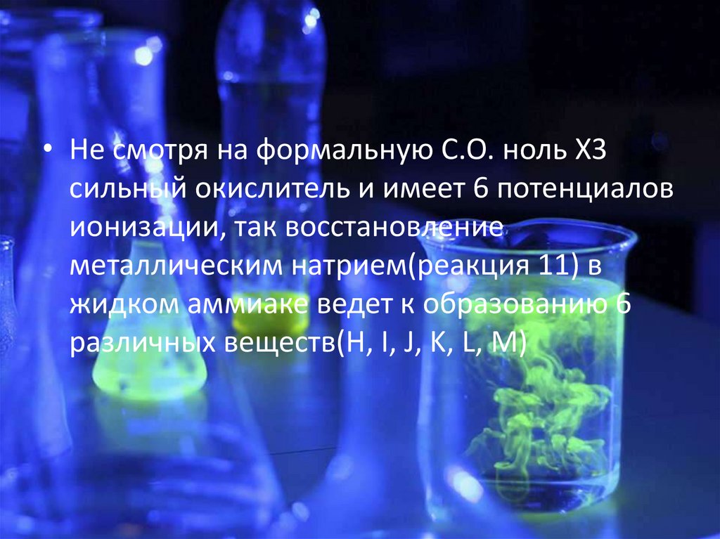 • Не смотря на формальную С.О. ноль X3сильный окислитель и имеет 6 потенциалов
