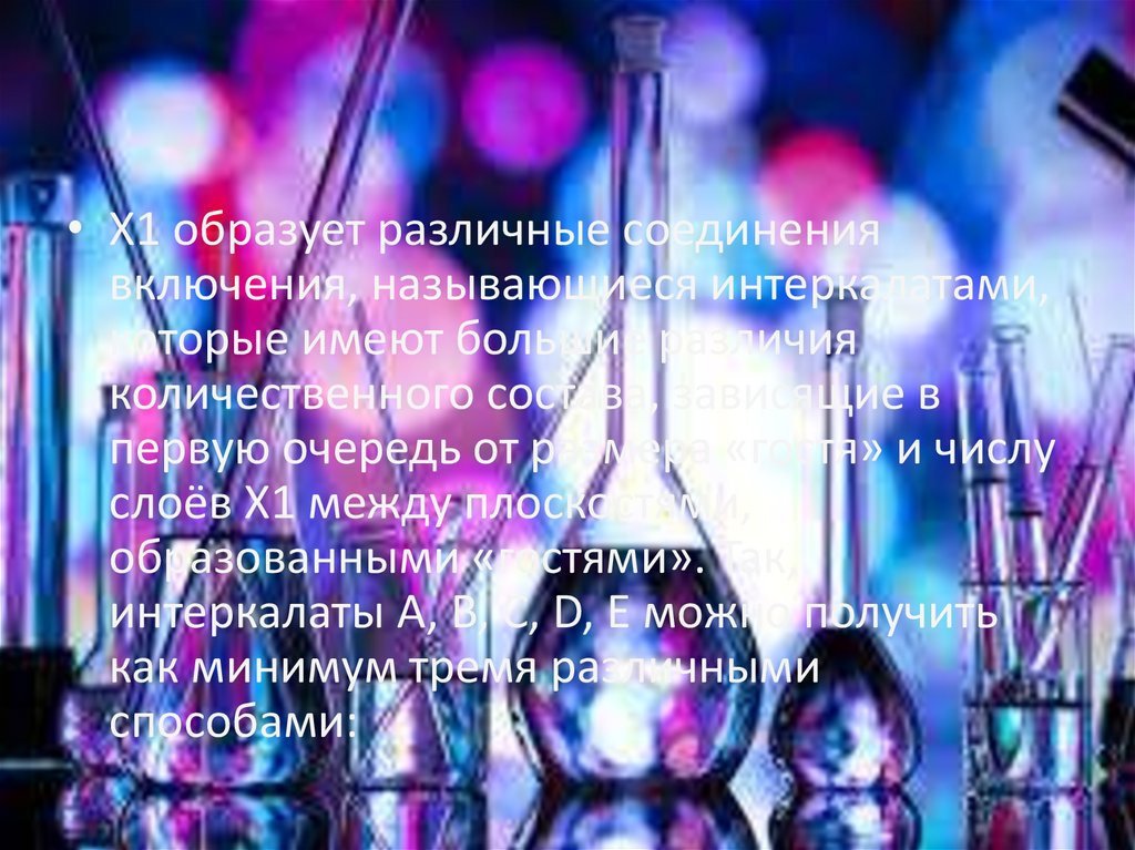 • X1 образует различные соединениявключения, называющиеся интеркалатами,