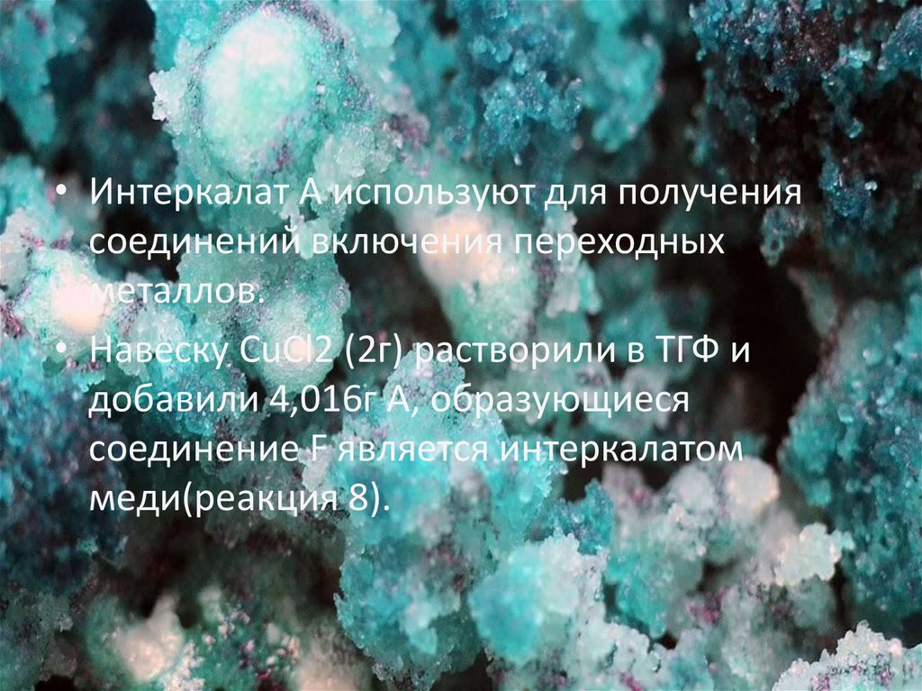 • Интеркалат А используют для получениясоединений включения переходных