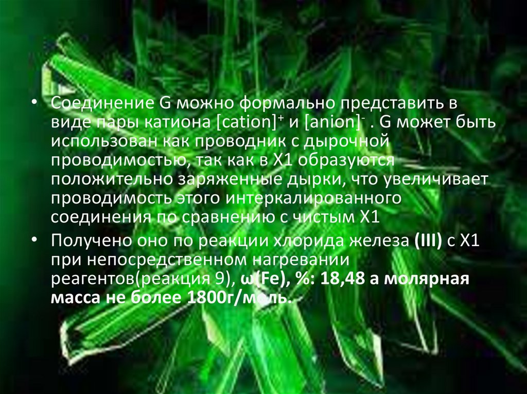 • Соединение G можно формально представить ввиде пары катиона [cation]+ и [anion]- . G может быть