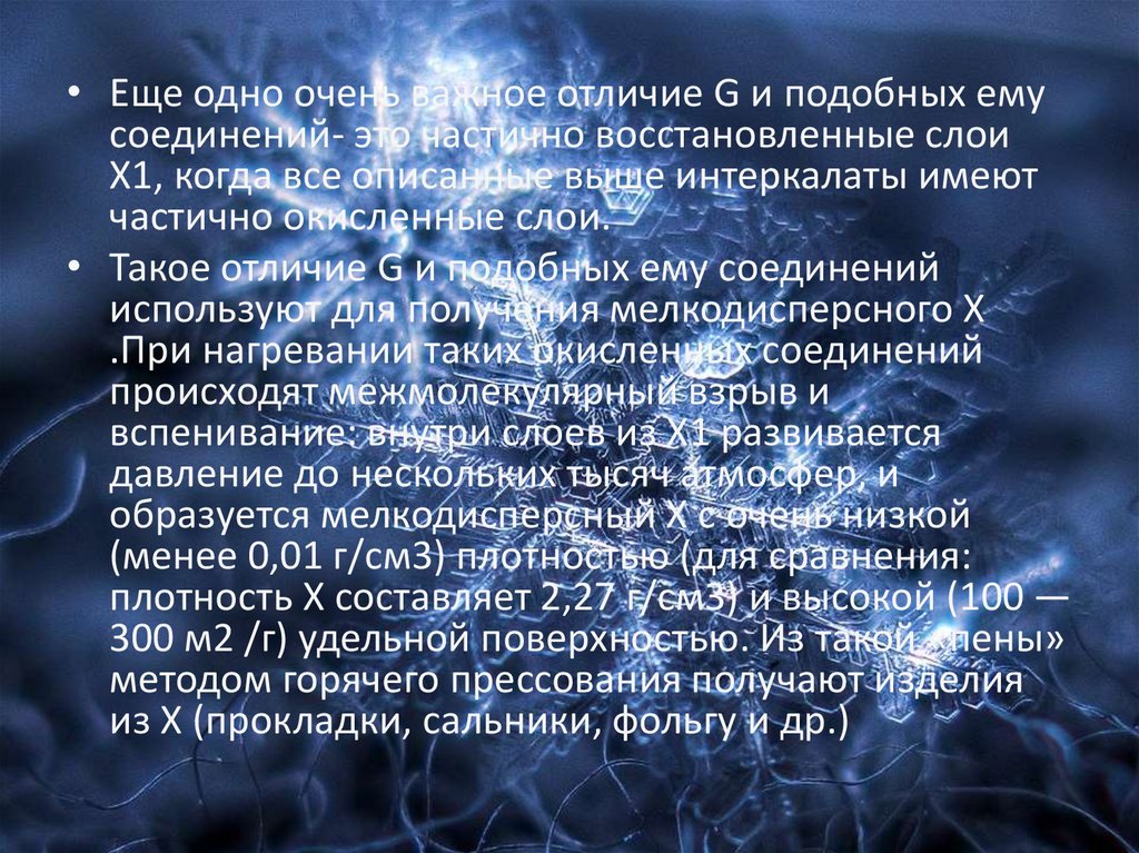 • Еще одно очень важное отличие G и подобных емусоединений- это частично восстановленные слои