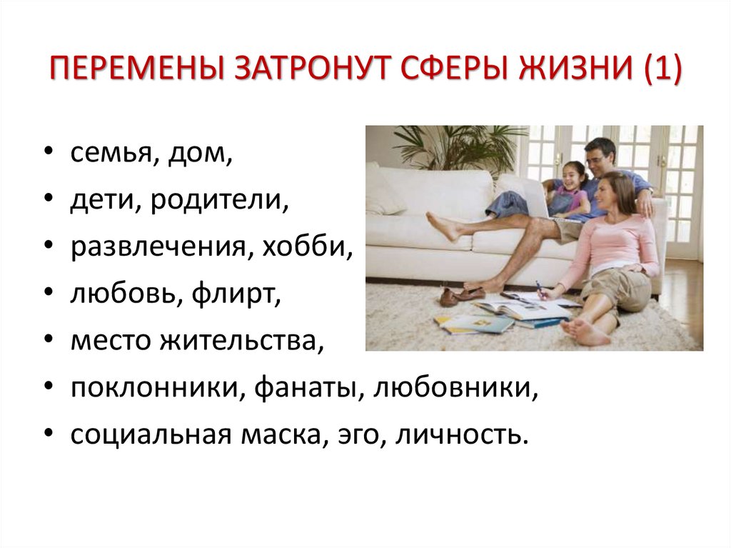 ПЕРЕМЕНЫ ЗАТРОНУТ СФЕРЫ ЖИЗНИ (1)семья, дом,