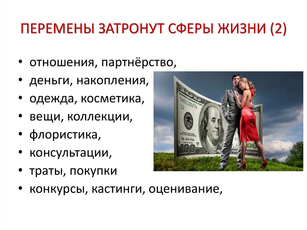 ПЕРЕМЕНЫ ЗАТРОНУТ СФЕРЫ ЖИЗНИ (2)отношения, партнёрство,