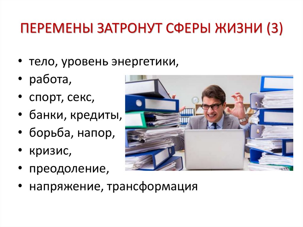 ПЕРЕМЕНЫ ЗАТРОНУТ СФЕРЫ ЖИЗНИ (3)тело, уровень энергетики,