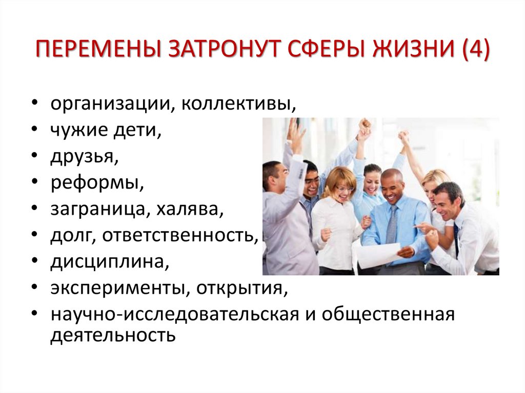 ПЕРЕМЕНЫ ЗАТРОНУТ СФЕРЫ ЖИЗНИ (4)организации, коллективы,