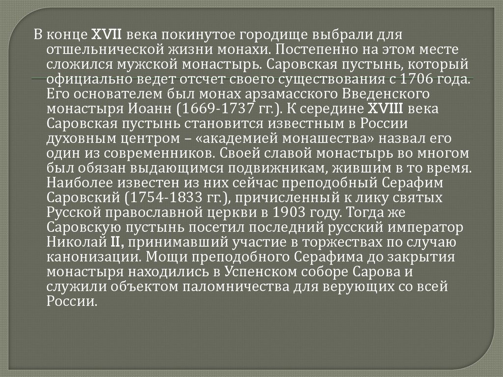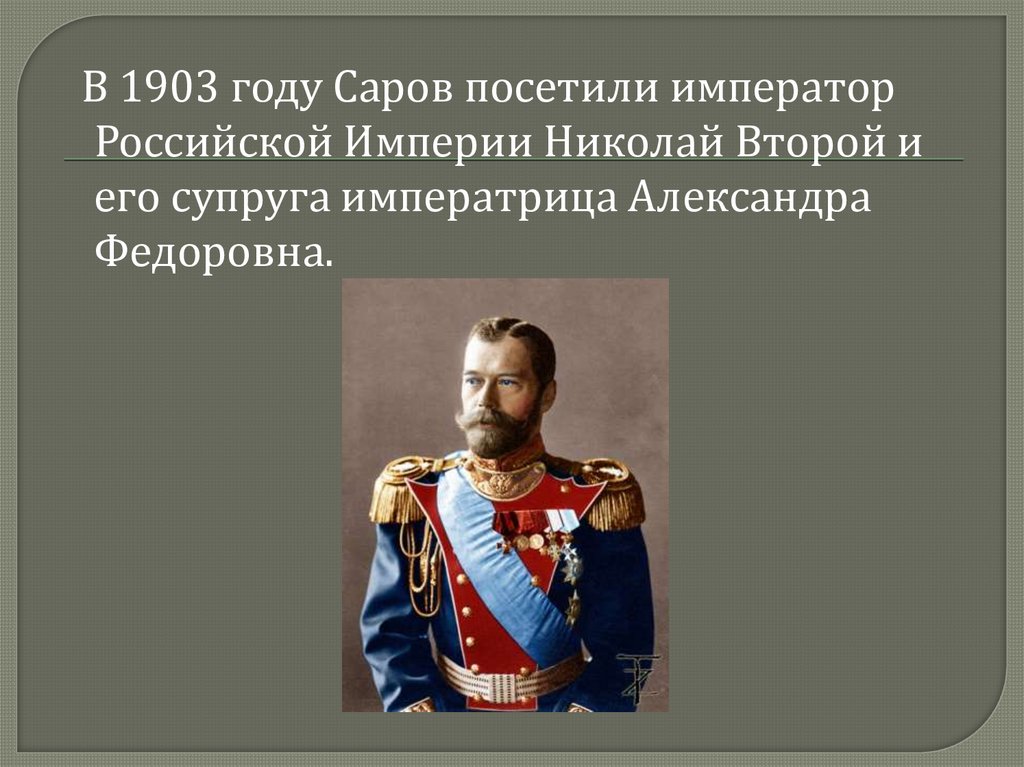 В 1903 году Саров посетили императорРоссийской Империи Николай Второй и