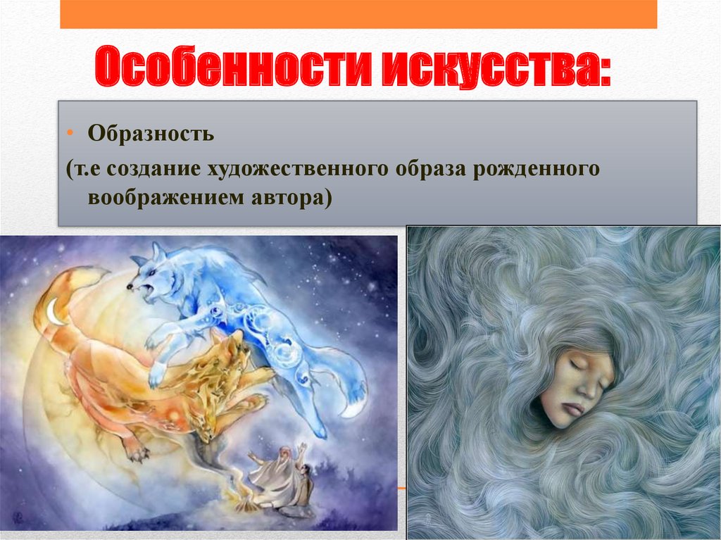 Особенности искусства:• Чувственное и эмоциональное восприятие мира