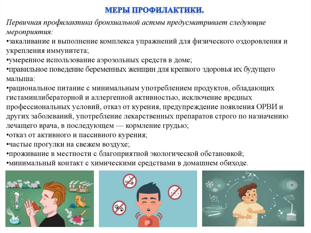Первичная профилактика бронхиальной астмы предусматривает следующиемероприятия: