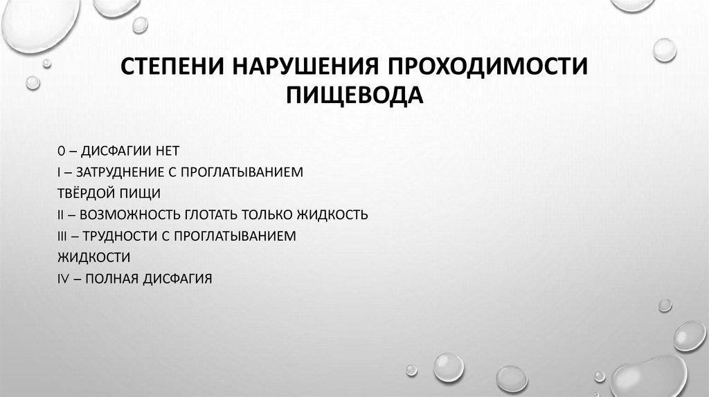 СТЕПЕНИ НАРУШЕНИЯ ПРОХОДИМОСТИПИЩЕВОДА