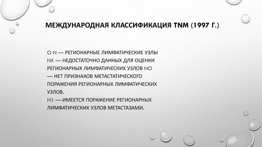 МЕЖДУНАРОДНАЯ КЛАССИФИКАЦИЯ TNM (1997 Г.)O N — РЕГИОНАРНЫЕ ЛИМФАТИЧЕСКИЕ УЗЛЫ
