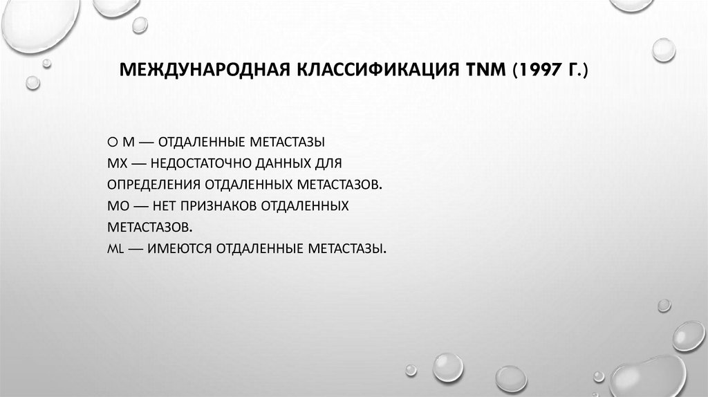 МЕЖДУНАРОДНАЯ КЛАССИФИКАЦИЯ TNM (1997 Г.)O М — ОТДАЛЕННЫЕ МЕТАСТАЗЫ