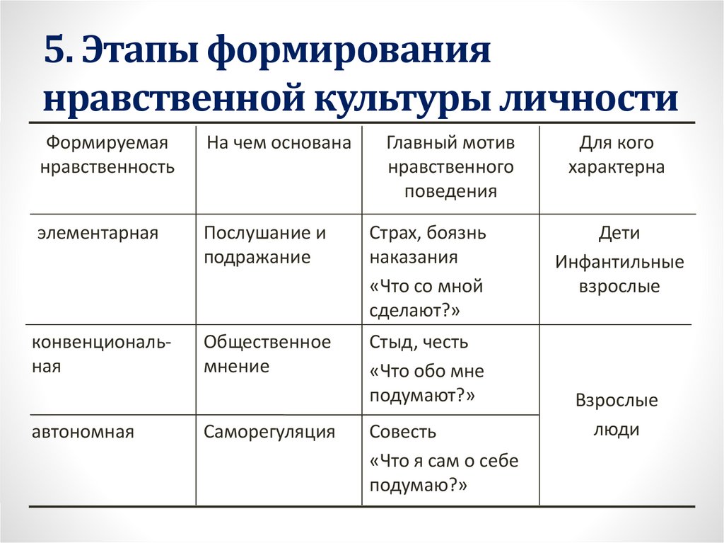 5. Этапы формированиянравственной культуры личности
