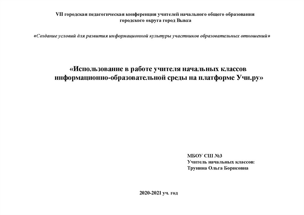 VII городская педагогическая конференция учителей начального общего образованиягородского округа город Выкса
