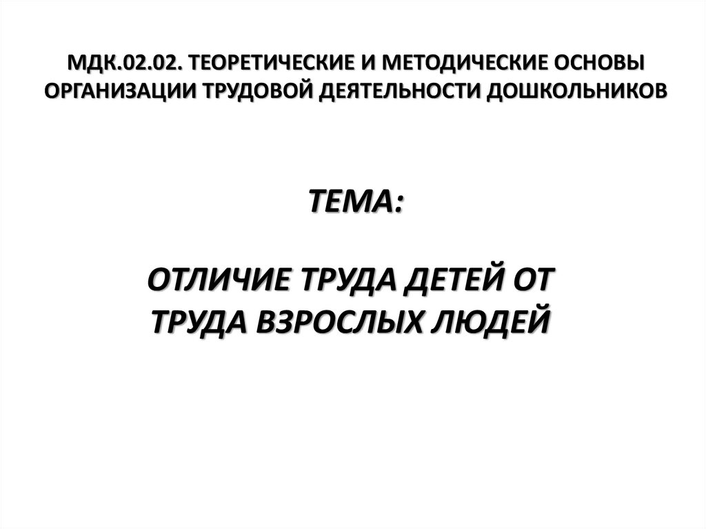 МДК.02.02. ТЕОРЕТИЧЕСКИЕ И МЕТОДИЧЕСКИЕ ОСНОВЫОРГАНИЗАЦИИ ТРУДОВОЙ ДЕЯТЕЛЬНОСТИ ДОШКОЛЬНИКОВ
