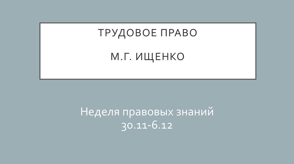 ТРУДОВОЕ ПРАВОМ.Г. ИЩЕНКО