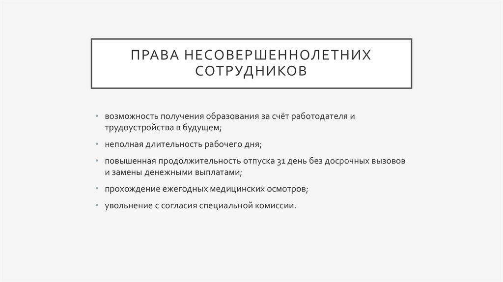 ПРАВА НЕСОВЕРШЕННОЛЕТНИХСОТРУДНИКОВ