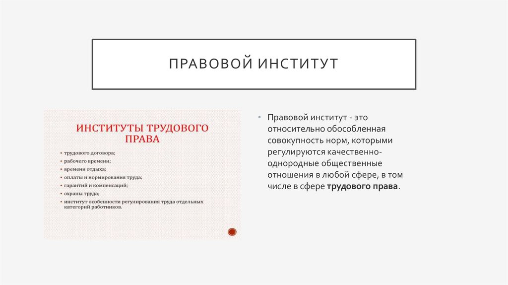 ПРАВОВОЙ ИНСТИТУТ• Правовой институт - это