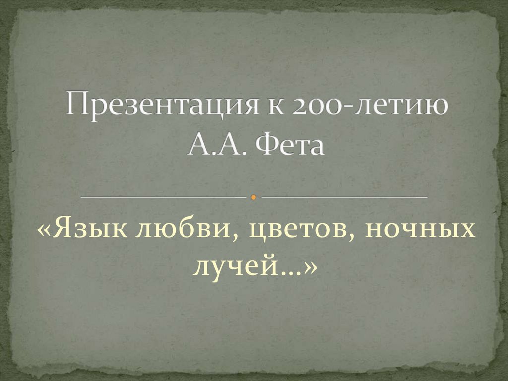 «Поэзия сердца» к 200 -летию Афанасия Афанасьевича Фета