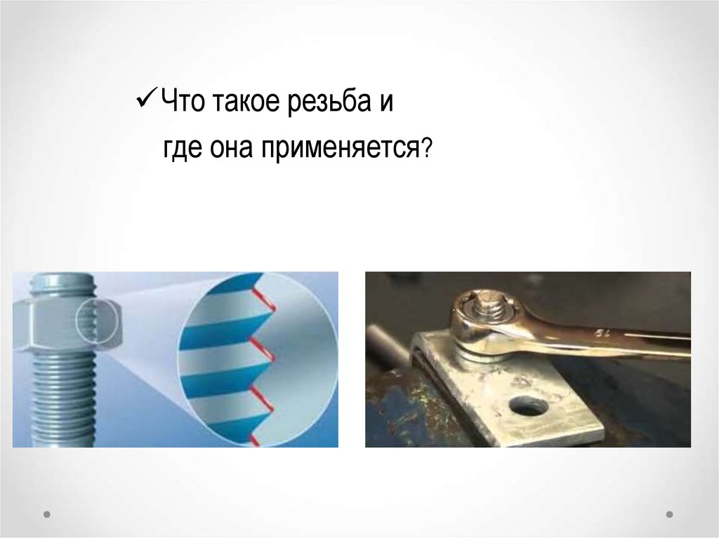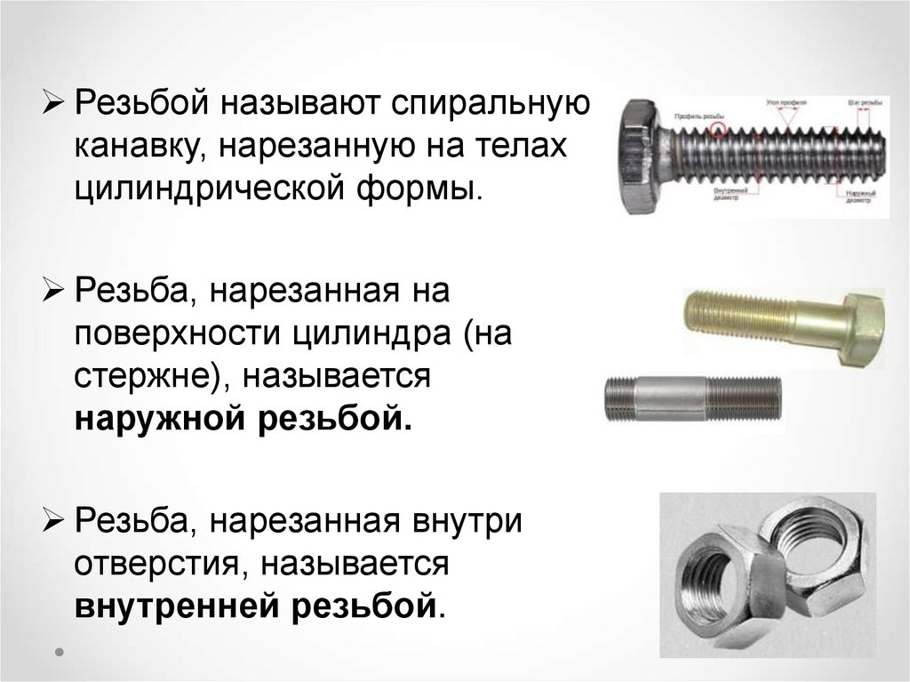 Резьбой называют спиральнуюканавку, нарезанную на телах