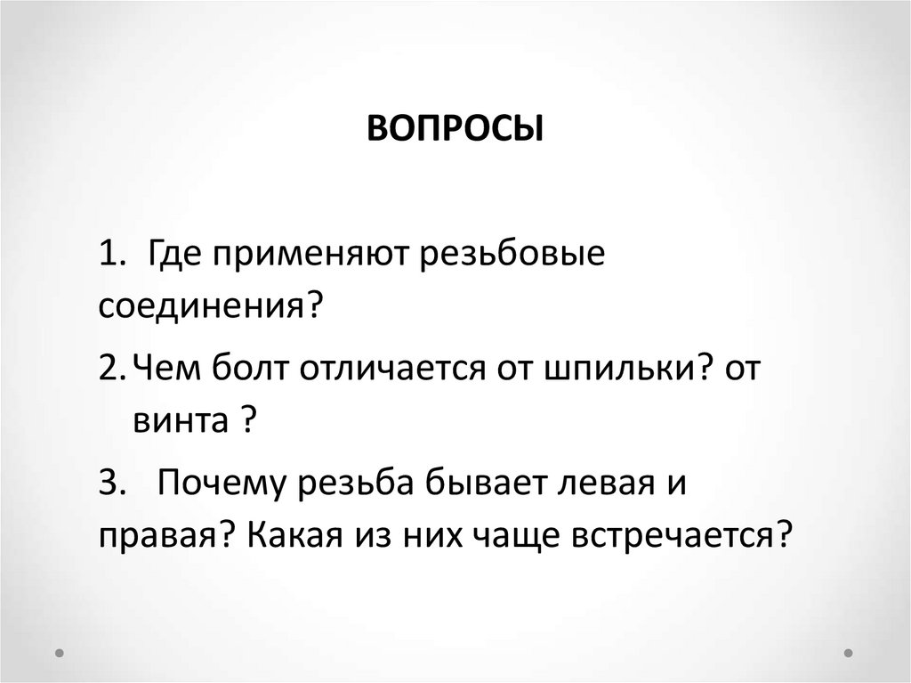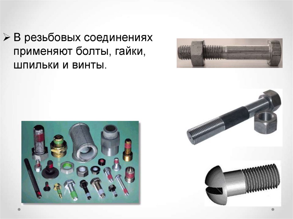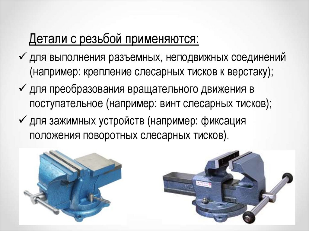 Детали с резьбой применяются:для выполнения разъемных, неподвижных соединений