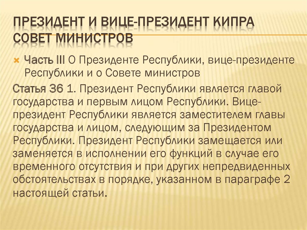 Часть III О Президенте Республики, вице-президенте