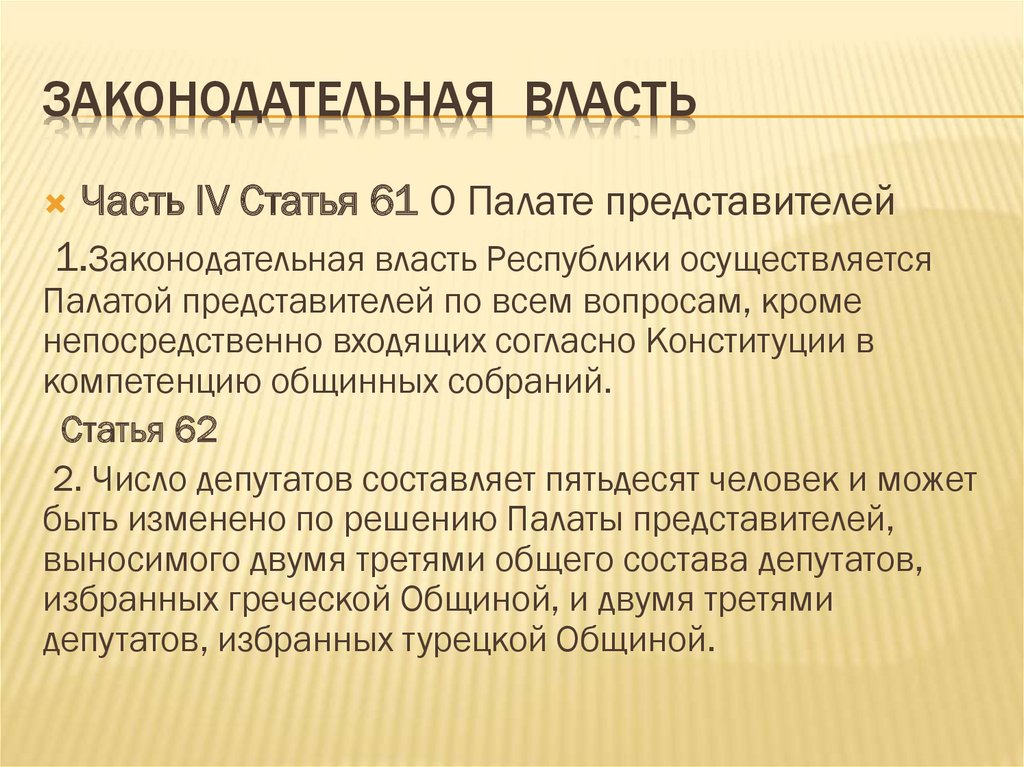 ЗАКОНОДАТЕЛЬНАЯ ВЛАСТЬЧасть IV Статья 61 О Палате представителей