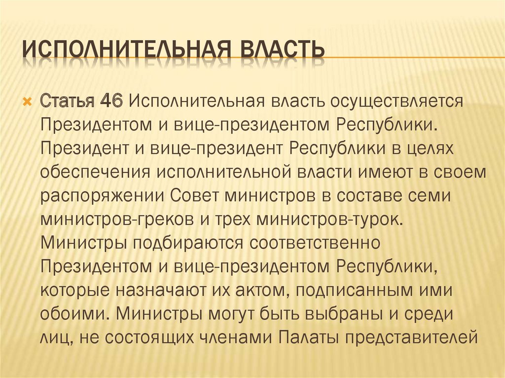 ИСПОЛНИТЕЛЬНАЯ ВЛАСТЬСтатья 46 Исполнительная власть осуществляется