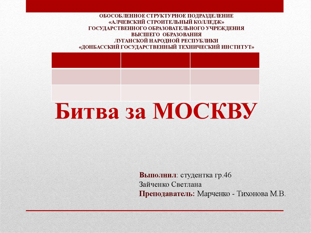 «ДОНБАССКИЙ ГОСУДАРСТВЕННЫЙ ТЕХНИЧЕСКИЙ ИНСТИТУТ»