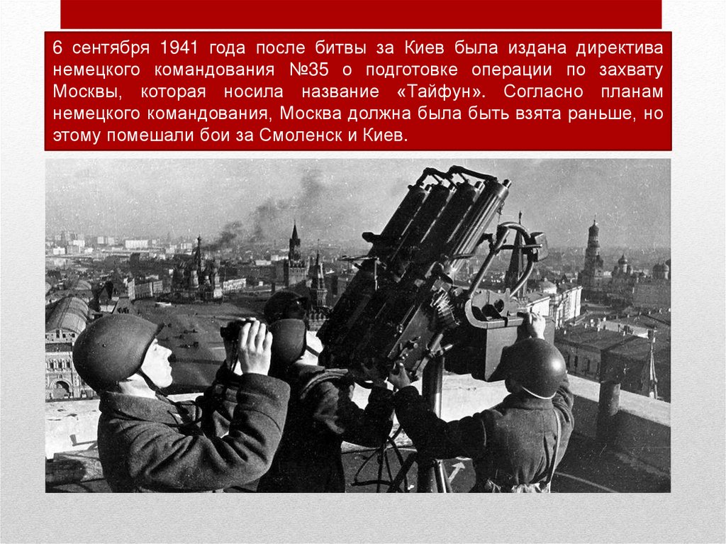 6 сентября 1941 года после битвы за Киев была издана директиванемецкого командования №35 о подготовке операции по захвату