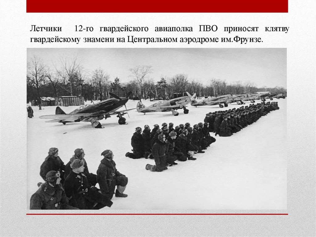 Летчики 12-го гвардейского авиаполка ПВО приносят клятвугвардейскому знамени на Центральном аэродроме им.Фрунзе.