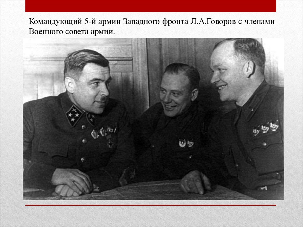 Командующий 5-й армии Западного фронта Л.А.Говоров с членамиВоенного совета армии.