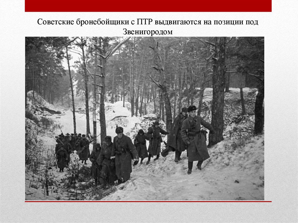 Советские бронебойщики с ПТР выдвигаются на позиции подЗвенигородом