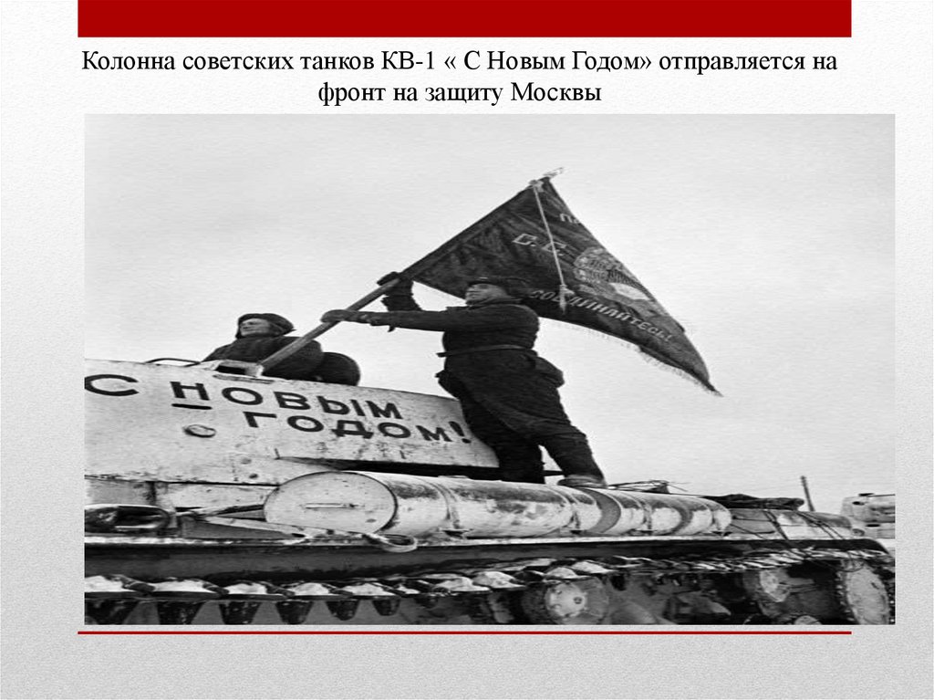 Колонна советских танков КВ-1 « С Новым Годом» отправляется нафронт на защиту Москвы