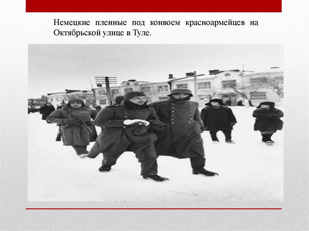 Немецкие пленные под конвоем красноармейцев наОктябрьской улице в Туле.