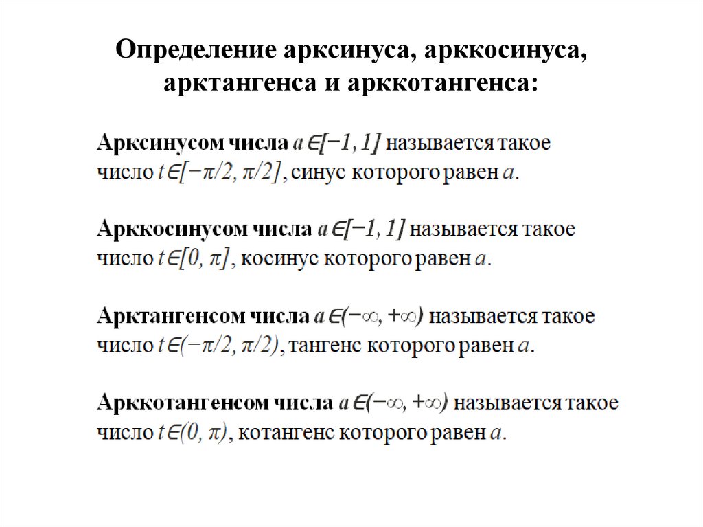 Определение арксинуса, арккосинуса,
