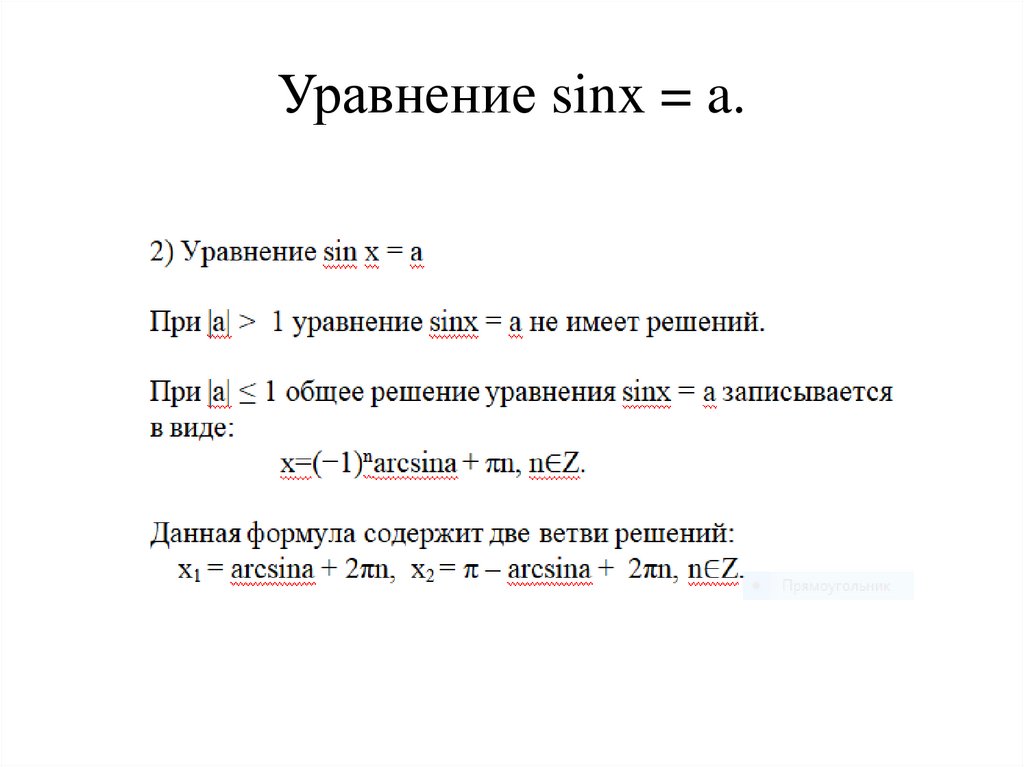 Уравнение sinx = a.