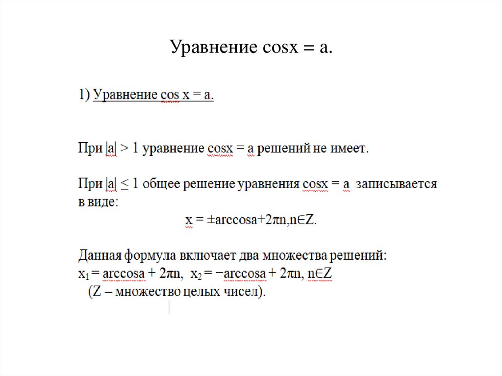 Уравнение cosx = a.