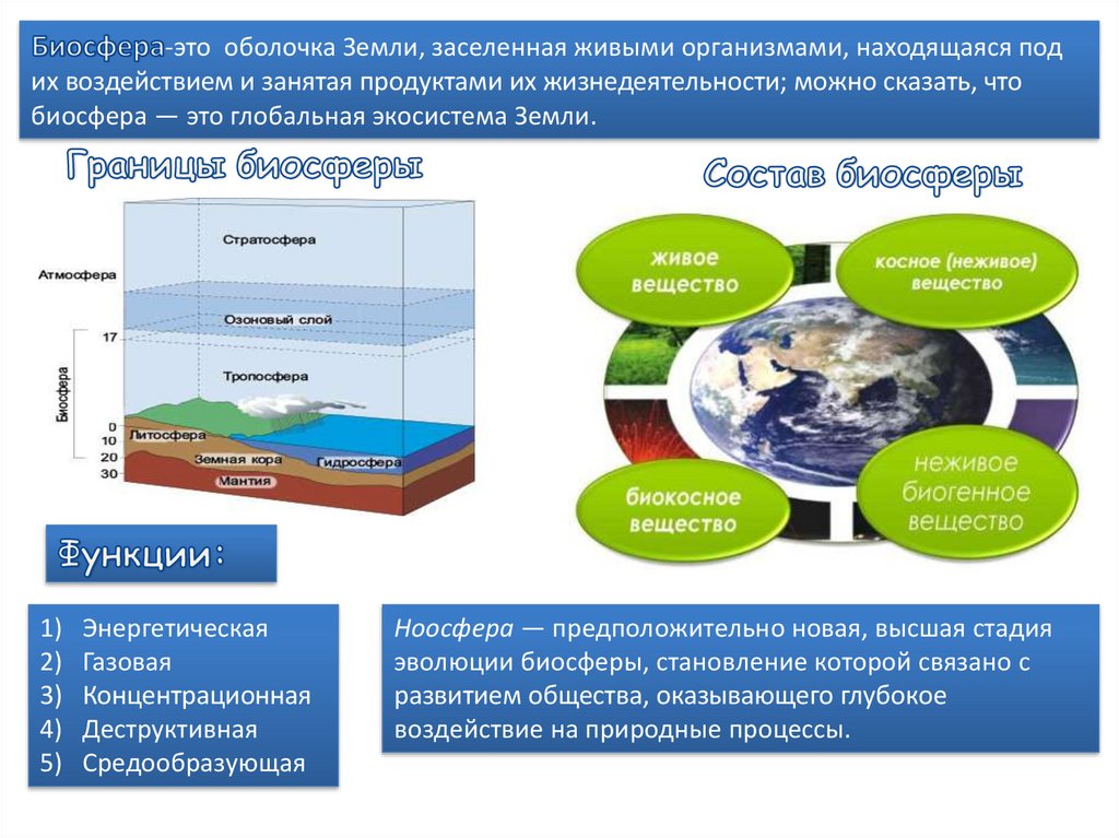 -это оболочка Земли, заселенная живыми организмами, находящаяся подих воздействием и занятая продуктами их жизнедеятельности; можно сказать, что