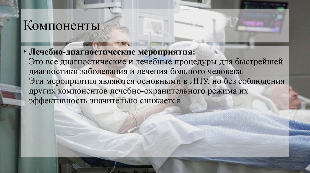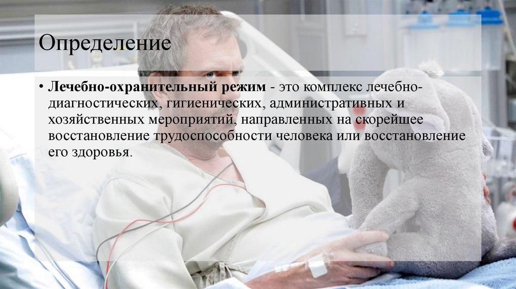 Определение• Лечебно-охранительный режим - это комплекс лечебнодиагностических, гигиенических, административных и
