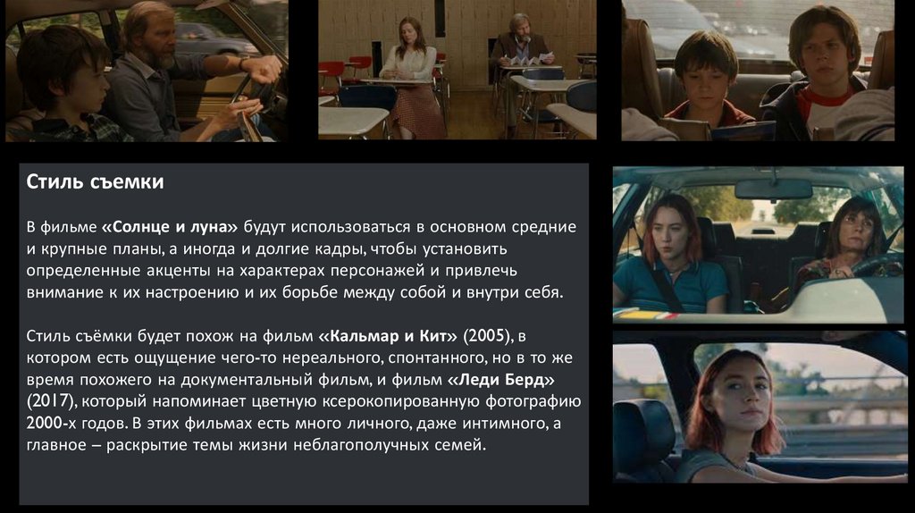 Стиль съемкиВ фильме «Солнце и луна» будут использоваться в основном средние