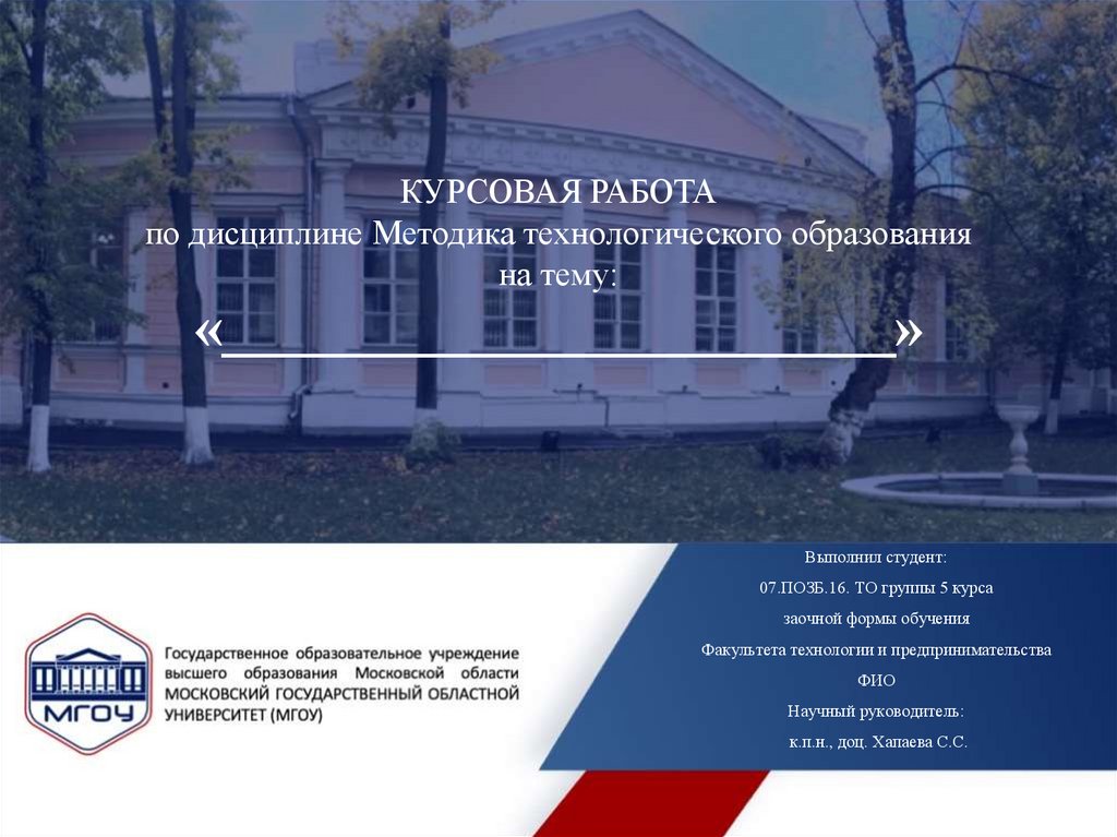 Шаблон презентации по дисциплине "Методика технологического образования"