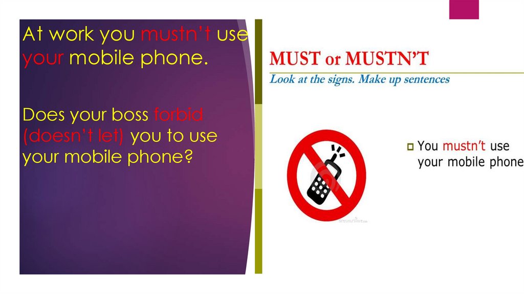 At work you mustn’t useyour mobile phone.