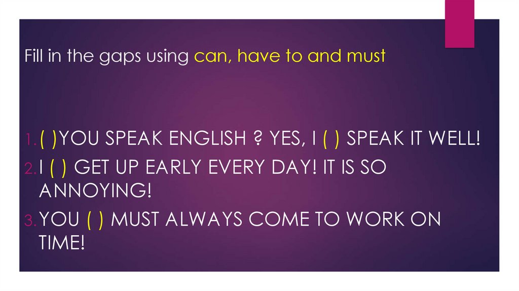 Fill in the gaps using can, have to and must1. (