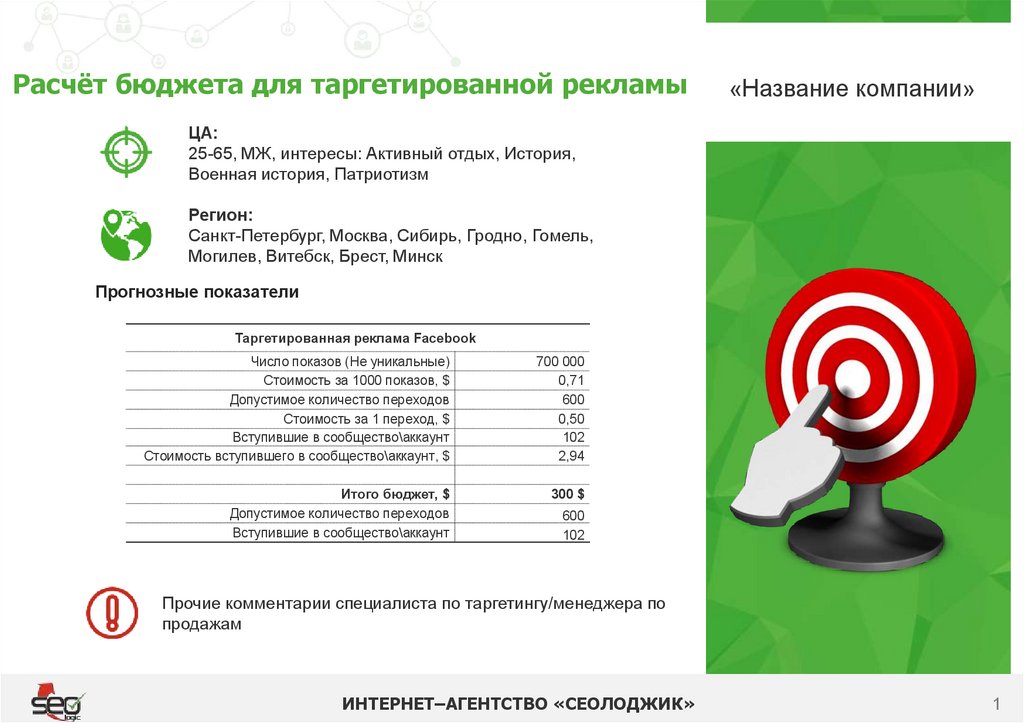 Раcчёт бюджета для таргетированной рекламы«Название компании»